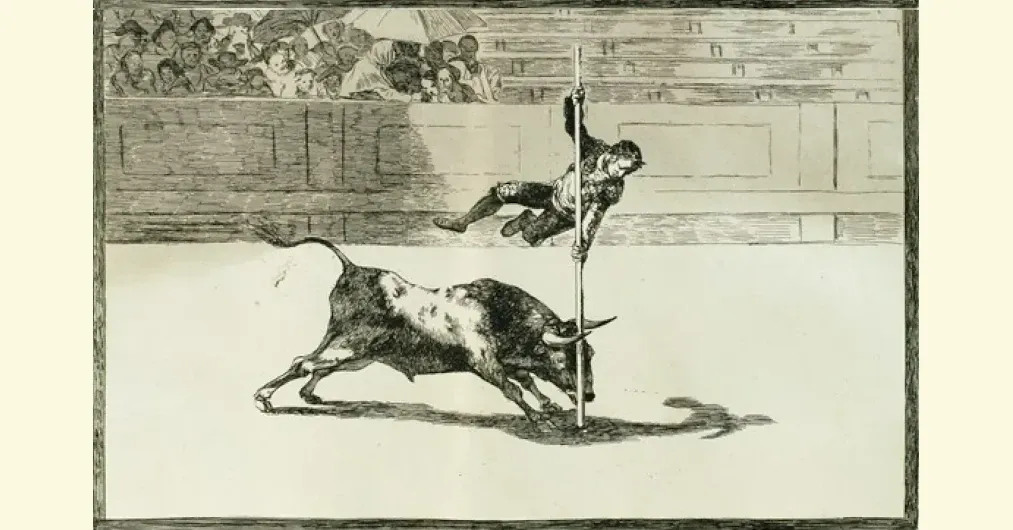 La acción del torero saltando por encima del toro para evitarlo, está documentada por Goya, en el grabado 'El Salto de la Garrocha' de la serie 'Tauromaquia'.