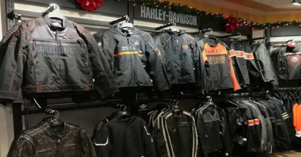 Harley-Davidson ingresó por ventas de chaquetas de cuero, botas, camisetas, pantalones vaqueros y más, el 5.4% de los ingresos del año pasado. Esta ropa ayuda incluso a los no propietarios a identificarse con el estilo de vida Harley-Davidson.